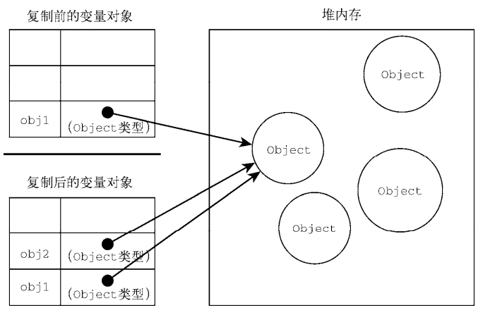 在把引用值从一个变量赋给另一个变量时,存储在变量中的值也会被复制到新变量所在的位置。区别在于,这里复制的值实际上是一个指针,它指向存储在堆内存中的对象。操作完成后,两个变量实际上指向同一个对象,因此一个对象上面的变化会在另一个对象上反映出来,如下面的例子所示: